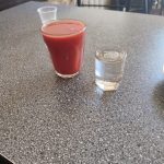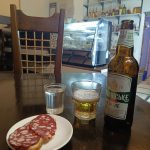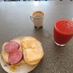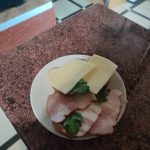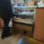 Za barem stojí starší paní, u ní klasická stará váha se dvěma plochami na vážení, skleněná výstavka s chlebíčky a kanapkami různých druhů, vejci mimóza a dalšími pochutinami. Jdu na to postupně. Nejdřív si dám čaj s citronem, kanapku se sýrem a druhou se slaninou, vidím volný stolek, připojím se na Wi-Fi vedlejšího podniku, kam jsem skočil na presso (23 hřiven) a dávám si své první jídlo. Lahoda. Kanapka, ze světlého vzdušného chleba, čaj, dohromady za 51 hřiven. Naprostá lahoda. Pak si dávám ještě rajčatový džus, a stohram horilky. 34 hřiven.
