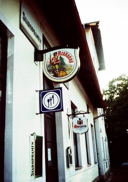 Ona nádražková atmosféra přišla opět až s prvním nahlédnutím do jídelního a nápojového lístku. S chutí jsme si dal dvanáctku “Krákoru” za 16 kaček! Točili i 11° Svijany za jedenadvacet, ale k tý se dostanu poměrně často. Krakonoš byl mnohemkrát chutnější než při mé poslední zkušenosti, měl krásnou typicky čistou hořkou chuť a musím říct, že za ty prachy bych si ho dal s chutí znova. Když v paměti šátrám, kde jsem měl za poslední roky levnější točenou dvanáctku, nic kromě Kácovského pivovaru (14,-) mne nenapadá.