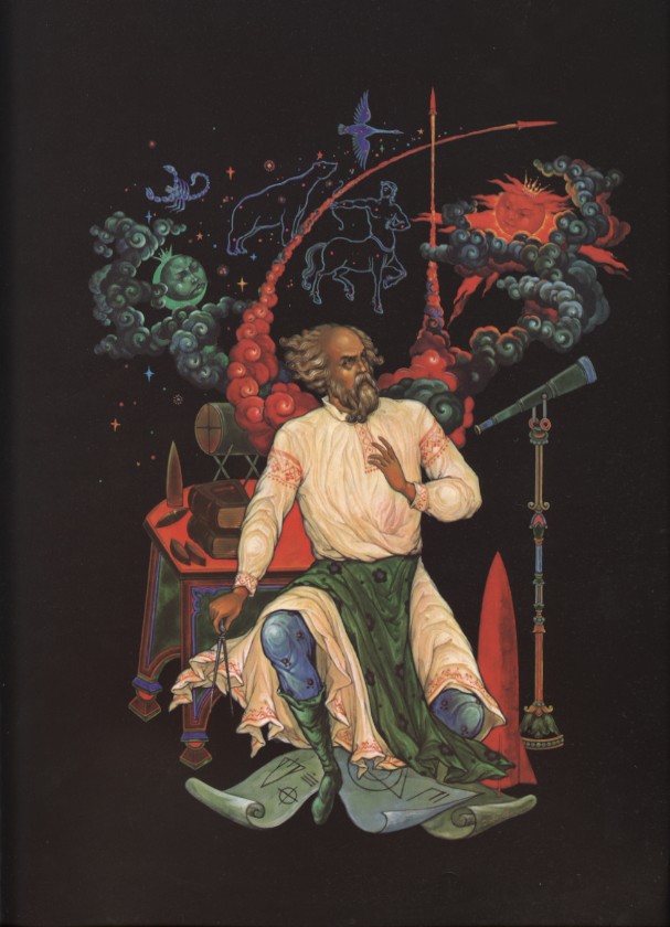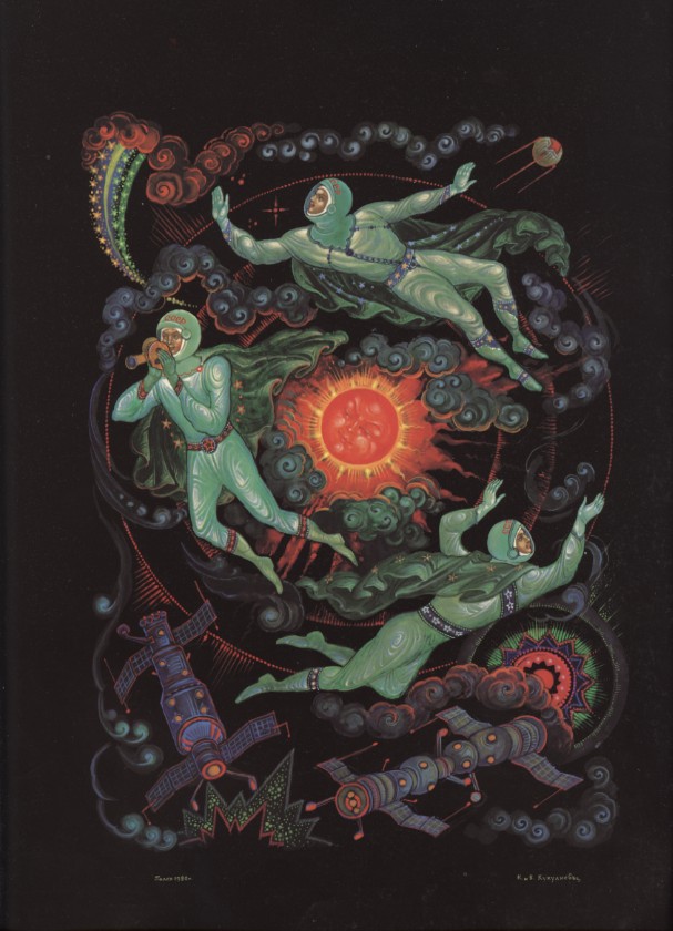 Malíři ikon z vesnice Palech dostali za úkol velebit tradičními malbami hrdiny sovětského dobývání vesmíru, kterými zjevně byli (v uvedeném pořadí) Lenin, Lomonosov, Puškin(!), Ciolkovskij, kolchoznice, rudoarmějec, tlusťoch s pravítkem a nakonec pak v nesčetných bohatýrských kostýmech vymalovaný Gagarin.