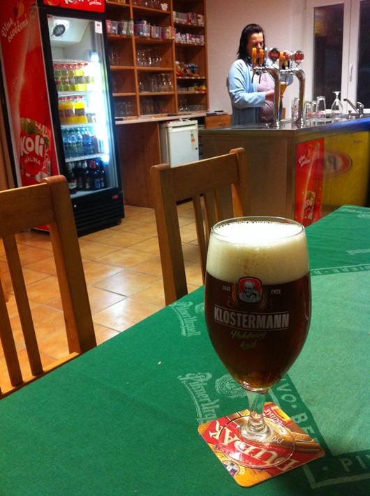 Kromě fungl nového dřevěného obložení disponuje horažďovicko-předměstská nádražka i novými plastovými dveřmi a okny. Tento izolační upgrade s sebou bohužel nese jednu dost podstatnou nevýhodu: absolutně nemáte tušení, co zrovna huhlá staniční rozhlas. Jistě, pokud vám slouží zrak a dohlédnete na hodiny poblíž vchodových dveří, jen stěží vám vlak ujede. Můj problém je nakonec spíše opačný: netuše o tříminutovém zpoždění, naklopím do sebe svého Klostermanna za 25,- zbytečně rychle a nestihnu si jej náležitě vychutnat.